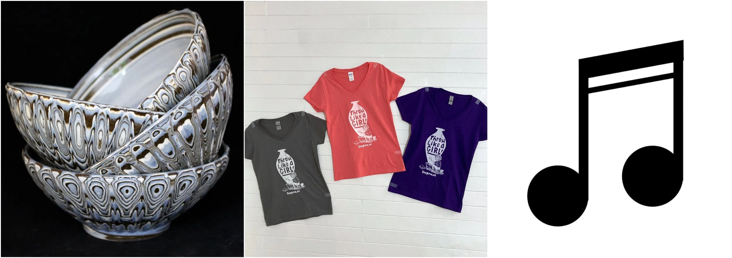 Shop online now for pottery, t-shirts and music Browse our selection of Pottery Shop Pottery Browse our selection of T-Shirts Shop T-Shirts Download Music written and performed by Eck McCanles Download Music